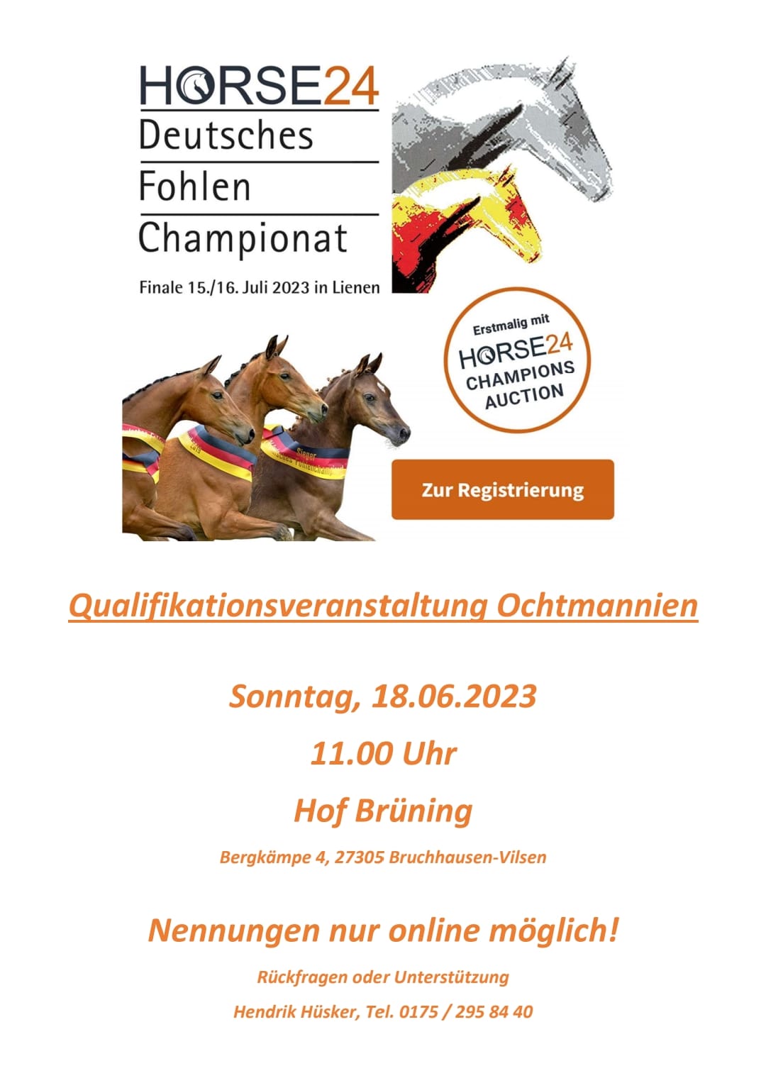 Die Qualifikation für das deutsche Fohlenchampiont in Lienen beginnt am 18.06.2023 um 11:Uhr